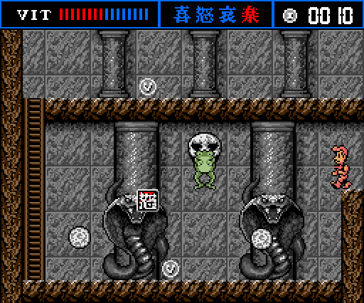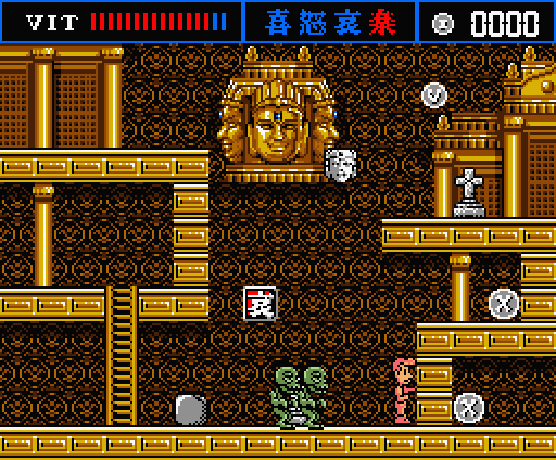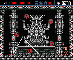 Konami was the great name for quality games on MSX in the late eighties, and Uşas was no exception. Besides that fact that it’s a great and hard 2D platformer–I only managed to beat it a full eight years later–the distinctive graphic style is magical and intriguing. Uşas takes place in five sets of ruins, all of a different style and colour setting. And all of these styles are decidedly Central Asian. Even with on a screen with just 256 by 212 pixels in sixteen colours, the Buddhas and Tibetan tapestries abound.