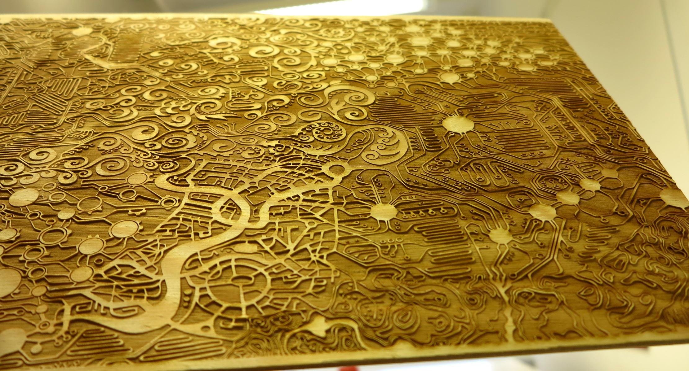 The network II: drawing meets laser: I made a drawing I told you about n another article, the network (it does not mean anything). The department head in my research group at uni expressed an interest in doing something lage scale on a rather empty wall. A fellow student took the idea and ran with it, and stuffed it in the laser cutter. This is not going up on the wall, it is merely a test run and playing with the laser cutter. Pretty damn beautiful, if I am to say so myself.