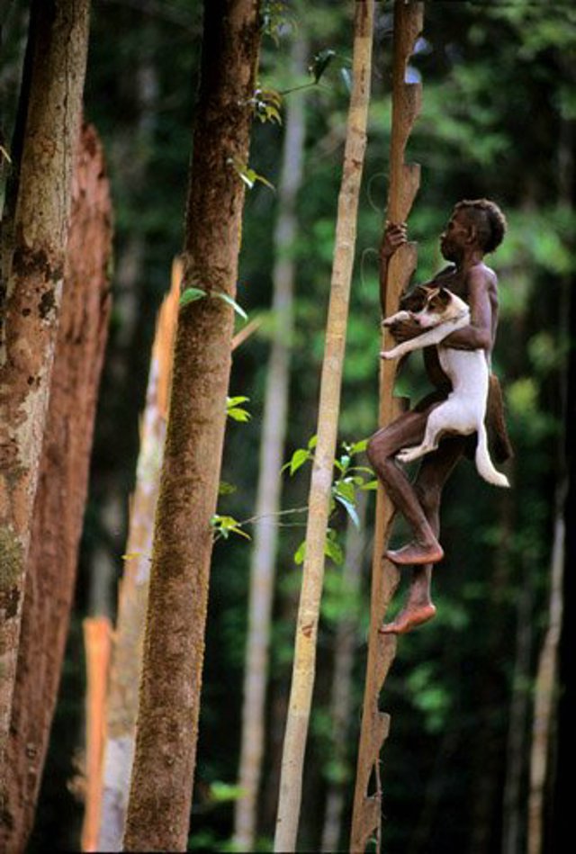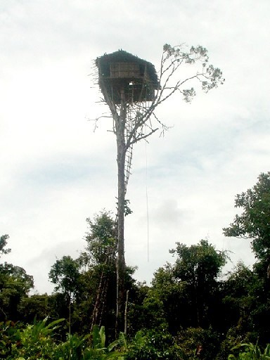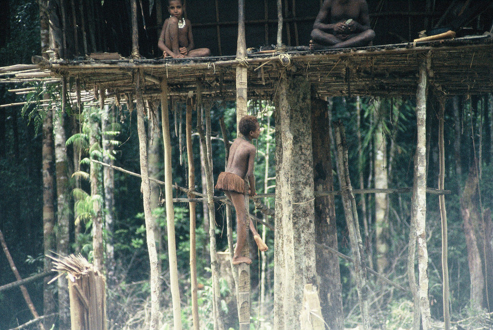 The Korowai people, inhabitants of Guinea, have become famous for three reasons. First, there are no records of the group having contact with Westeners until 1974, when anthropologist Peter Van Arsdale and a group of researchers led and expedition to the south bank of the Upper Eilanden River. Second, the Korowai have been reported to practice ritual cannibalism, although there are suspicions this is nowadays not more than a way of encouraging tourism. And third, the Korowai live up in the air. Up to 35 meters up.