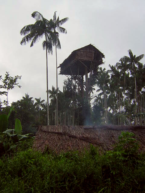 Their tree houses are built well above flood-water levels, mainly for defensive purposes: The height and girth of the ironwood stilts protect them from arson attacks (nuts set alight and inhabitants smoked out – not a nice way to go), and disrupting rival clans from kidnapping women and children. They are also an excellent protection against mosquitos and evil spirits.