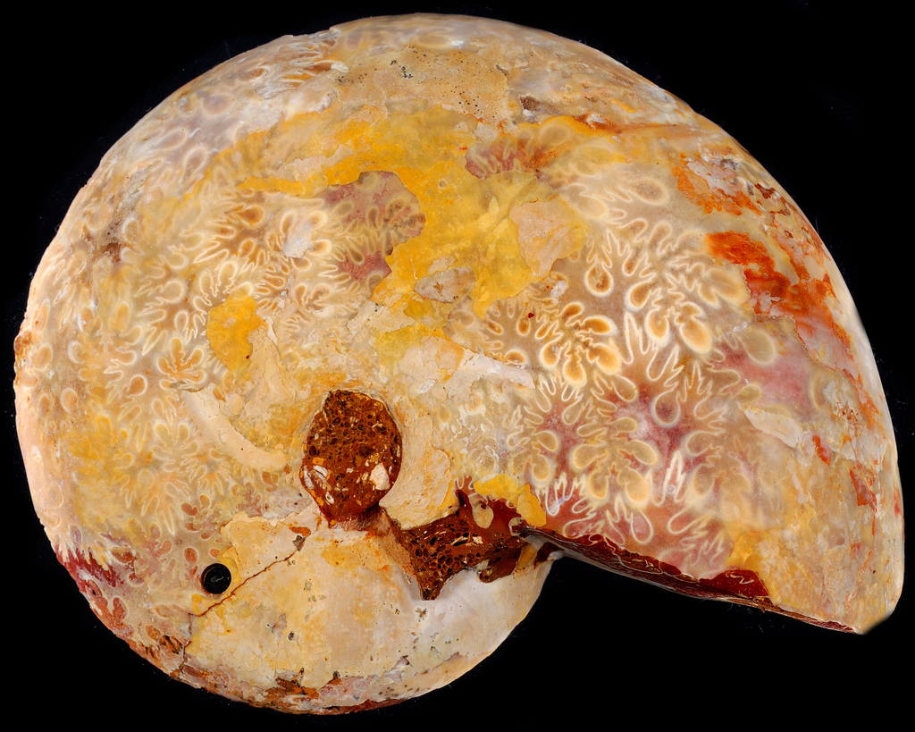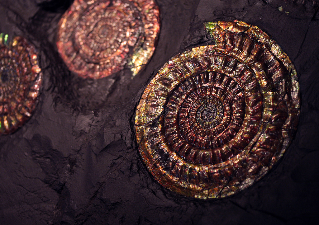 Here are some beautiful examples of ammonite colors and patterns. All the photos come from Flickr Commons (links in the descriptions).