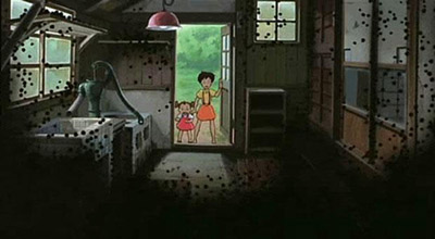 - [SPOILERS!] If this theory is correct, it means Mei is dead. Satsuki goes to look for her, and opens death’s door, going inside. Wrought with grief, she supposedly joins her sister, like the girl’s suicide in the Sayama Incident. Oh, the Susuwatari come back during this scene.